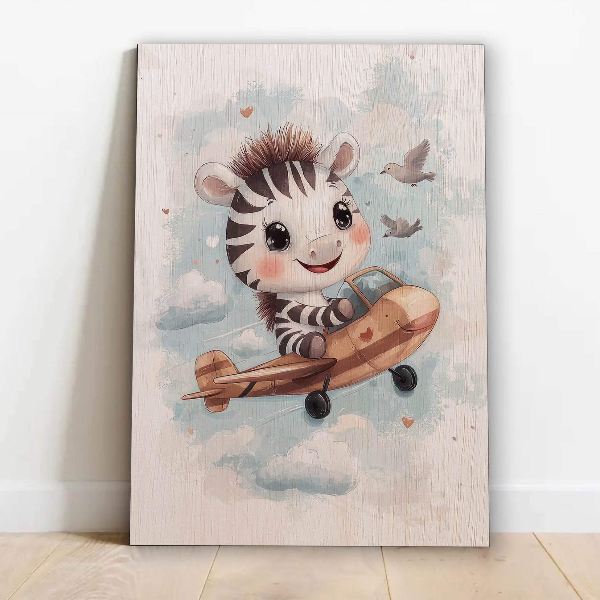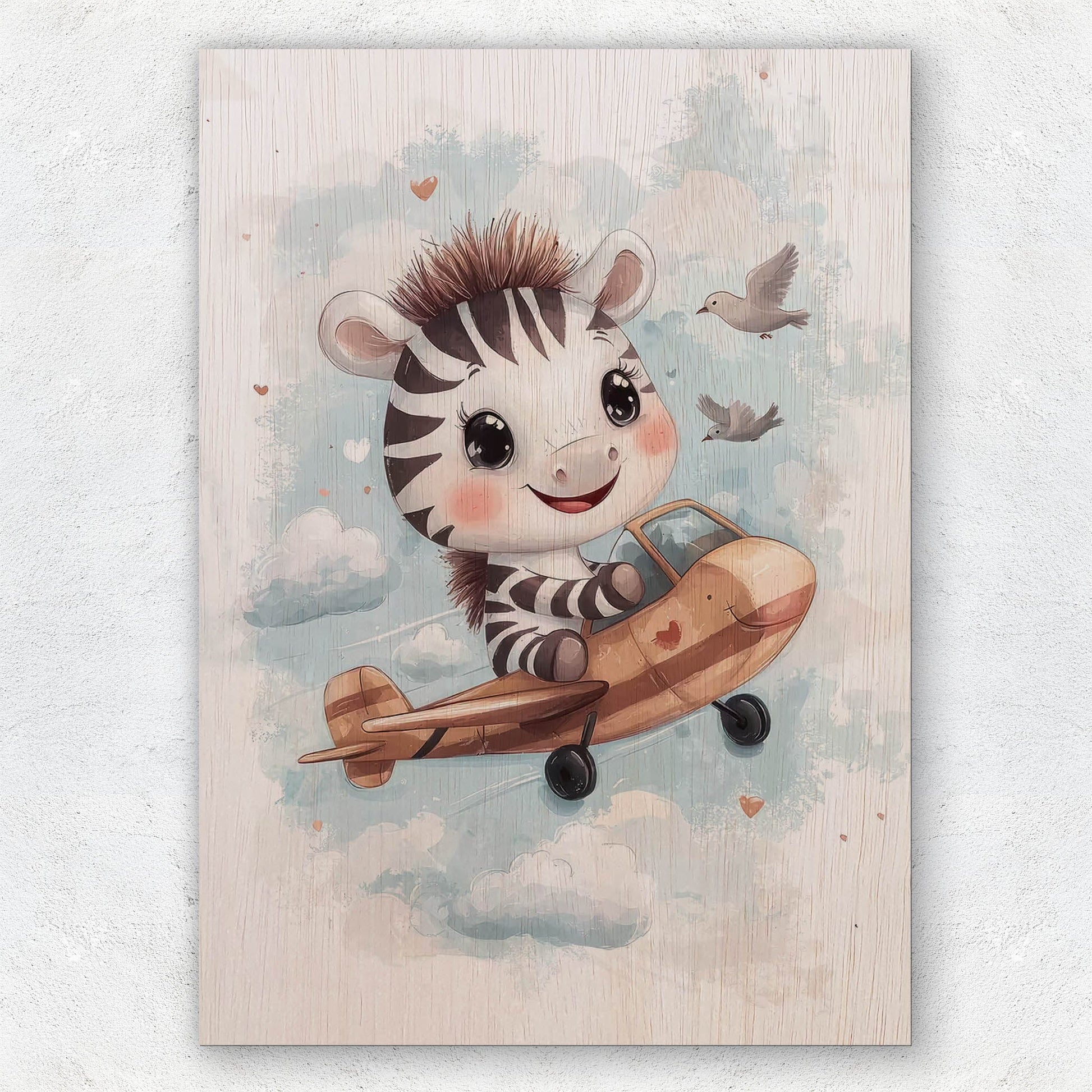 Cute Zebra Flying Airplane Laser Cut Wood Poster