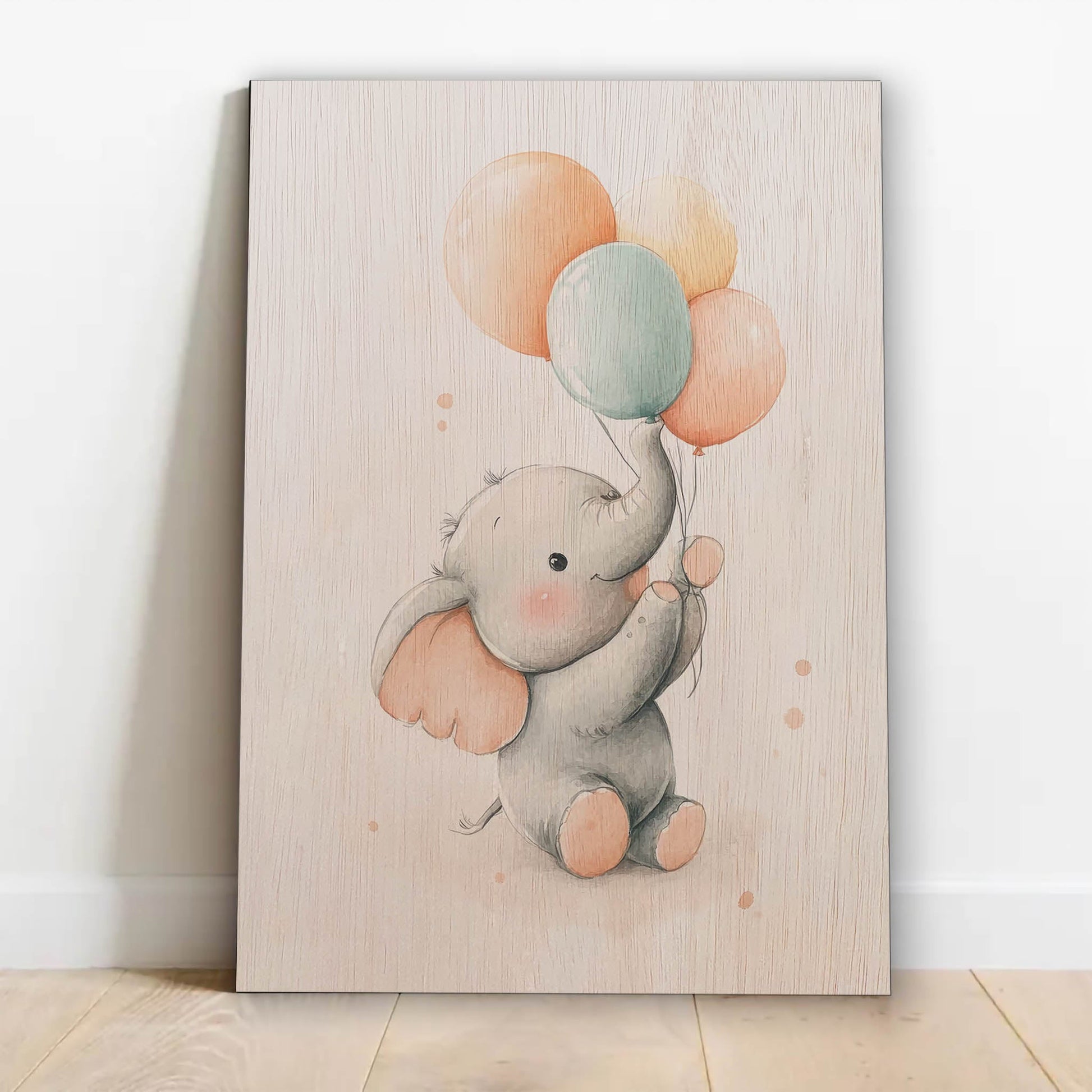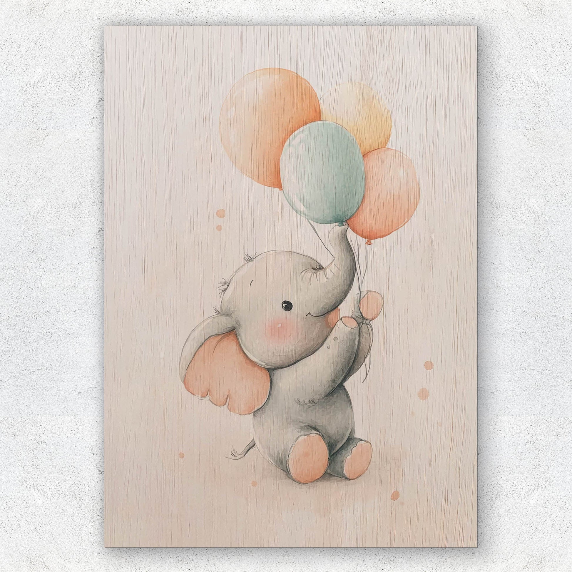 Cute Elephant with Balloons Laser Cut Wood Poster