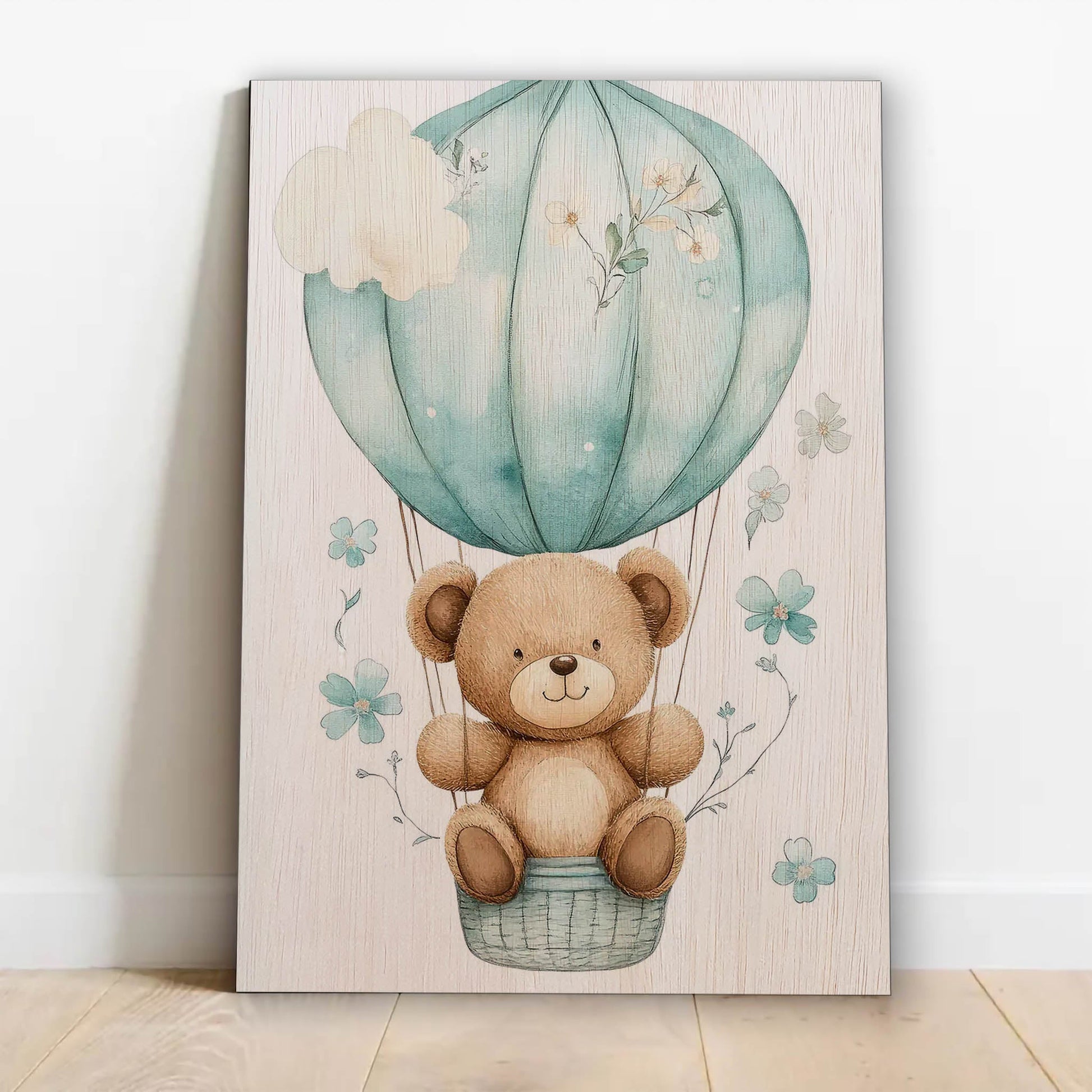 Teddy Bear Hot Air Balloon Laser Cut Wood Poster