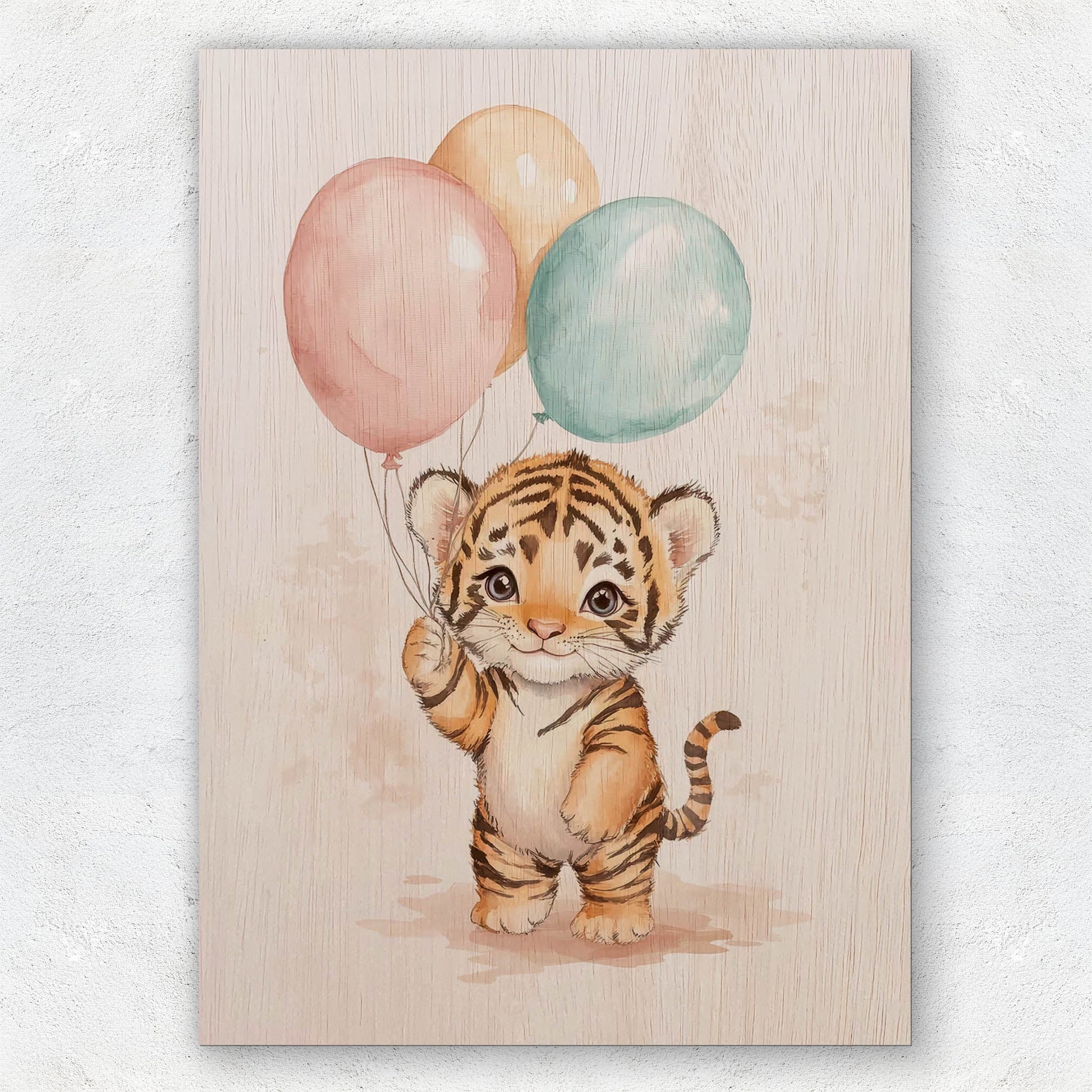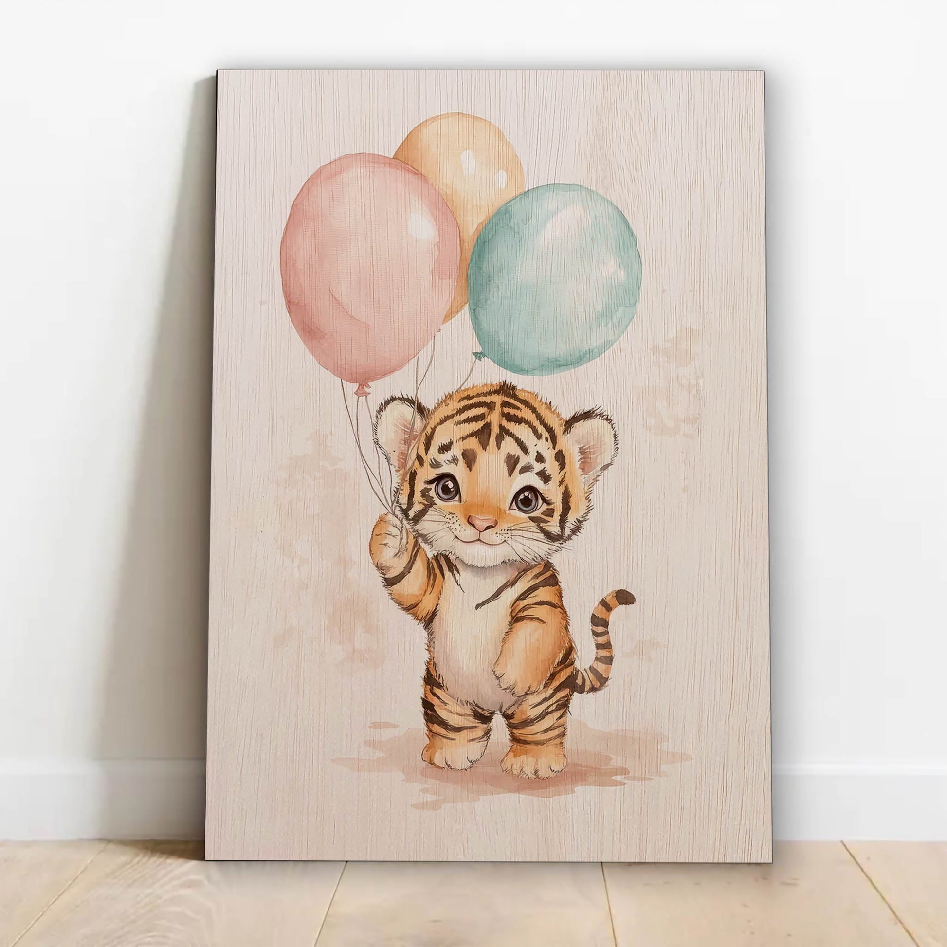 Cute Tiger with Balloons Laser Cut Wood Poster