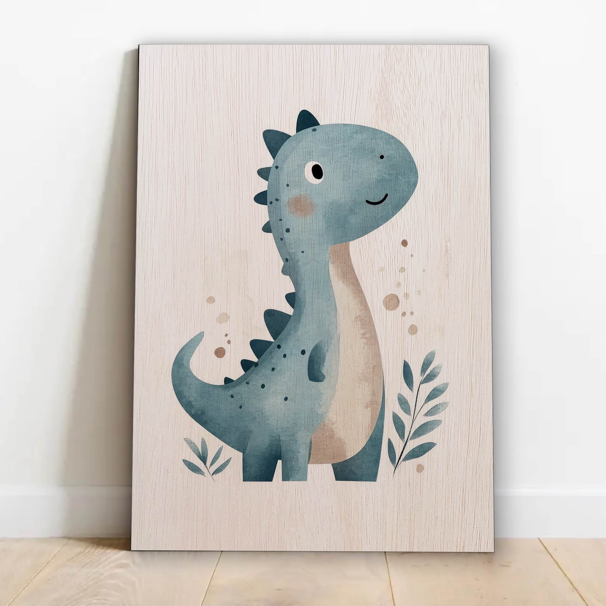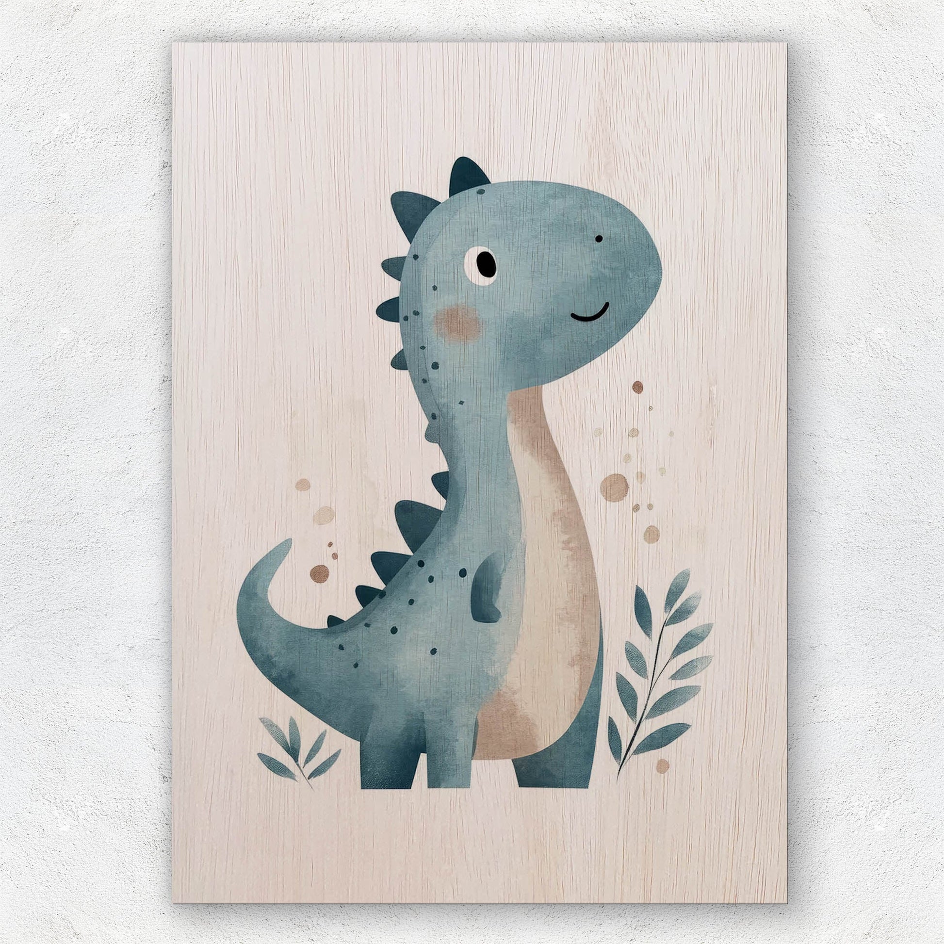 Cute Blue Dinosaur Laser Cut Wood Poster