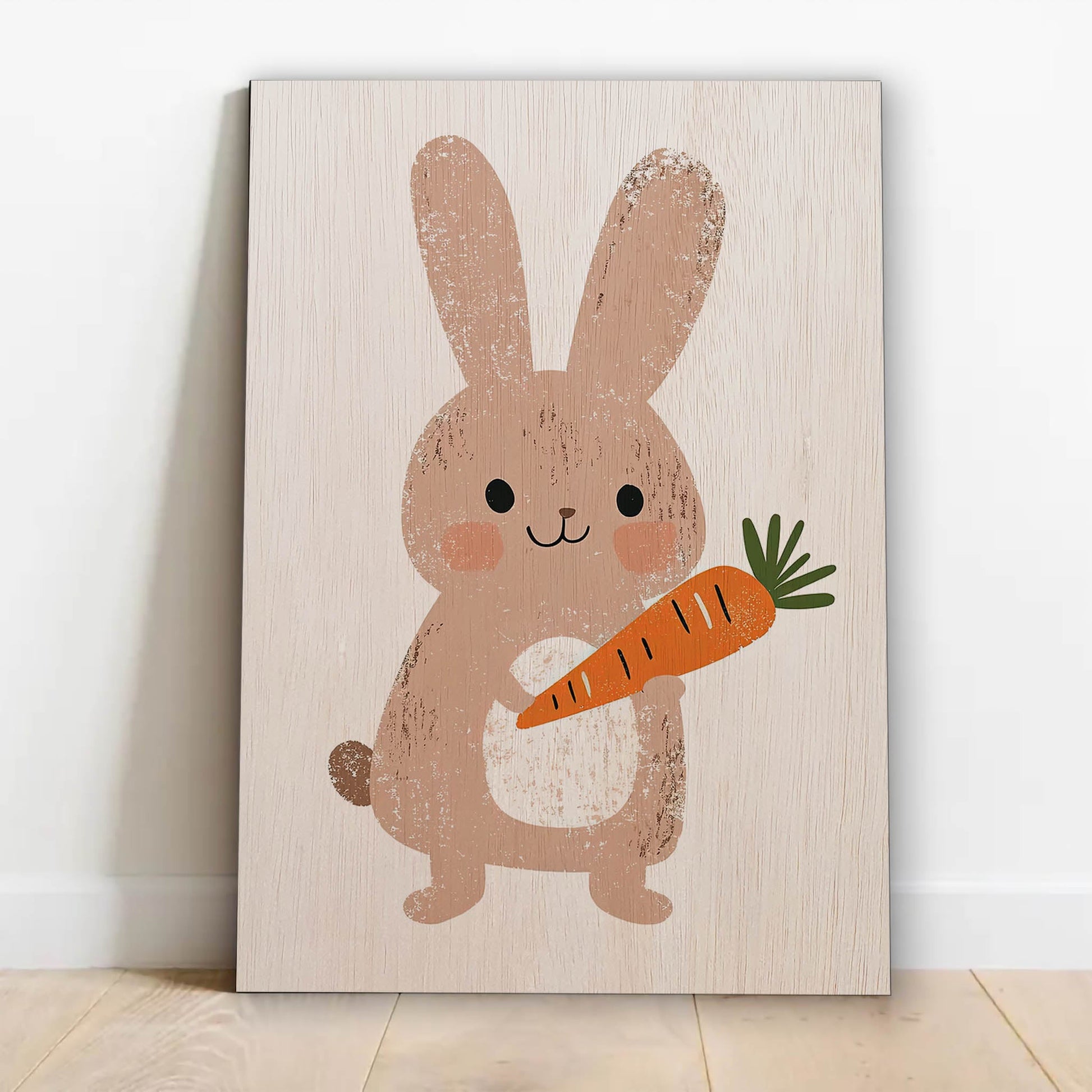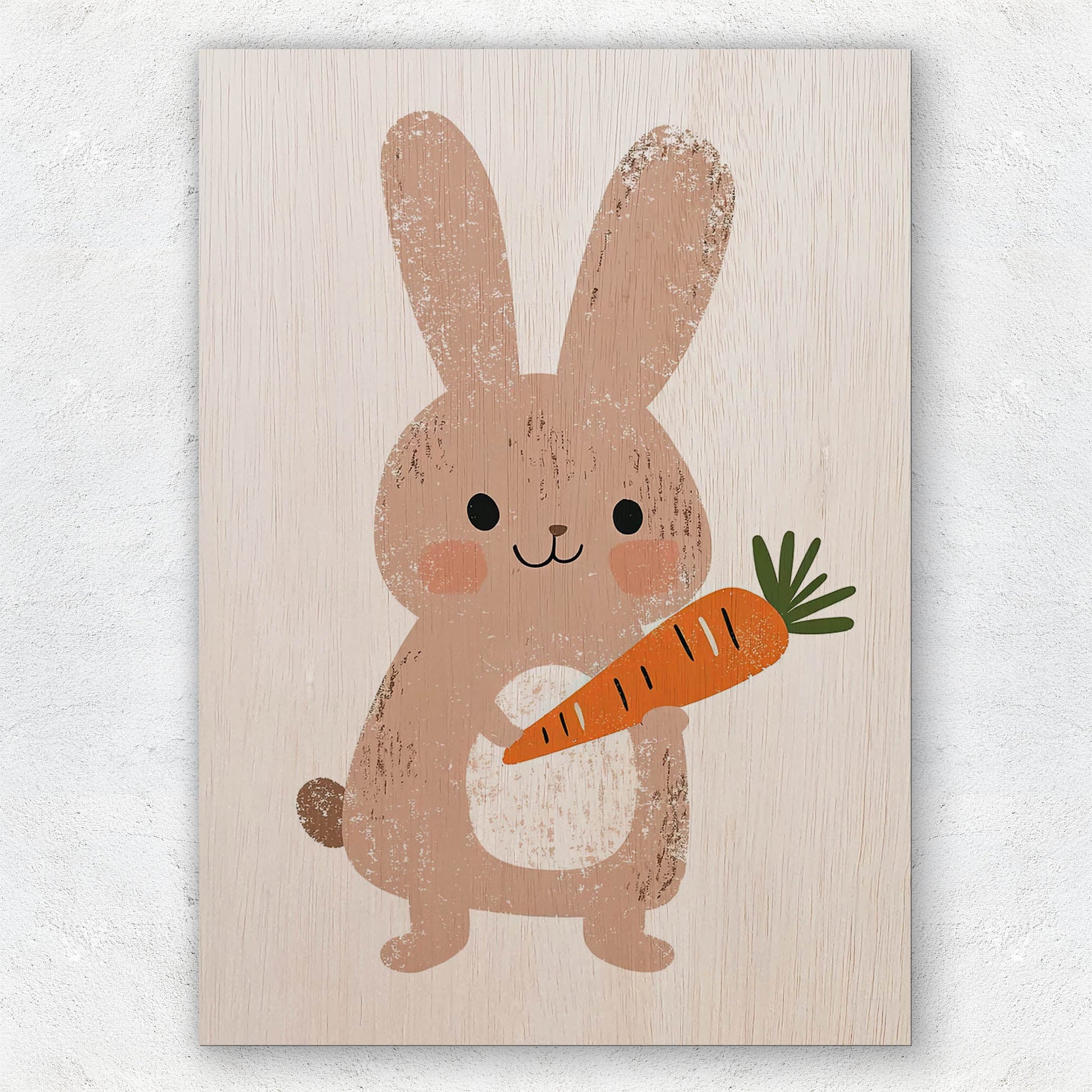 Cute Bunny with Carrot Laser Cut Wood Poster