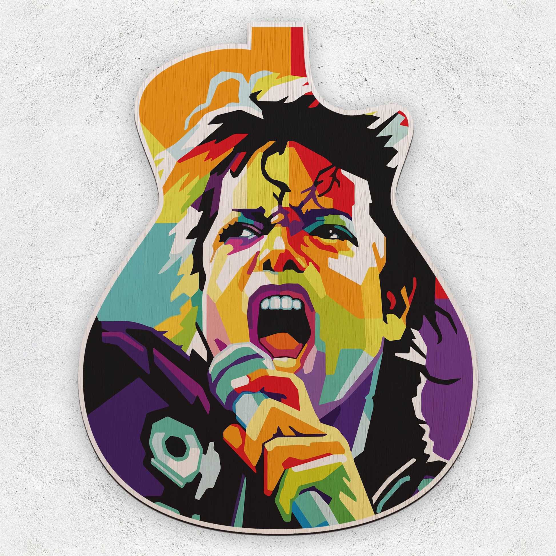 Printed directly onto 1cm thick, premium Australian-made Laserply, this 40cm × 32cm guitar-shaped wood print fuses vibrant digital artwork with the natural warmth and texture of wood.