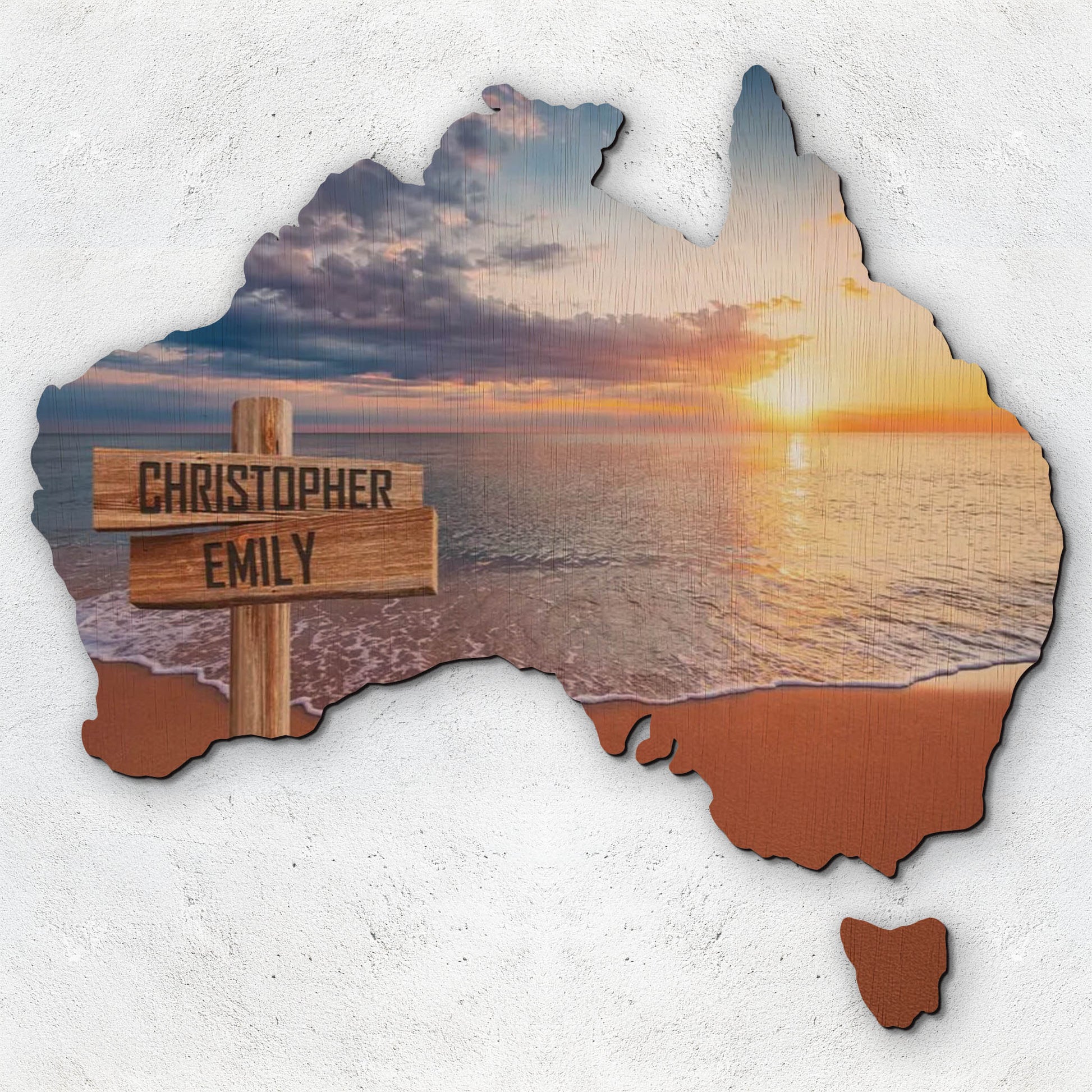 Ocean Sunset Personalised Australian Wood Map