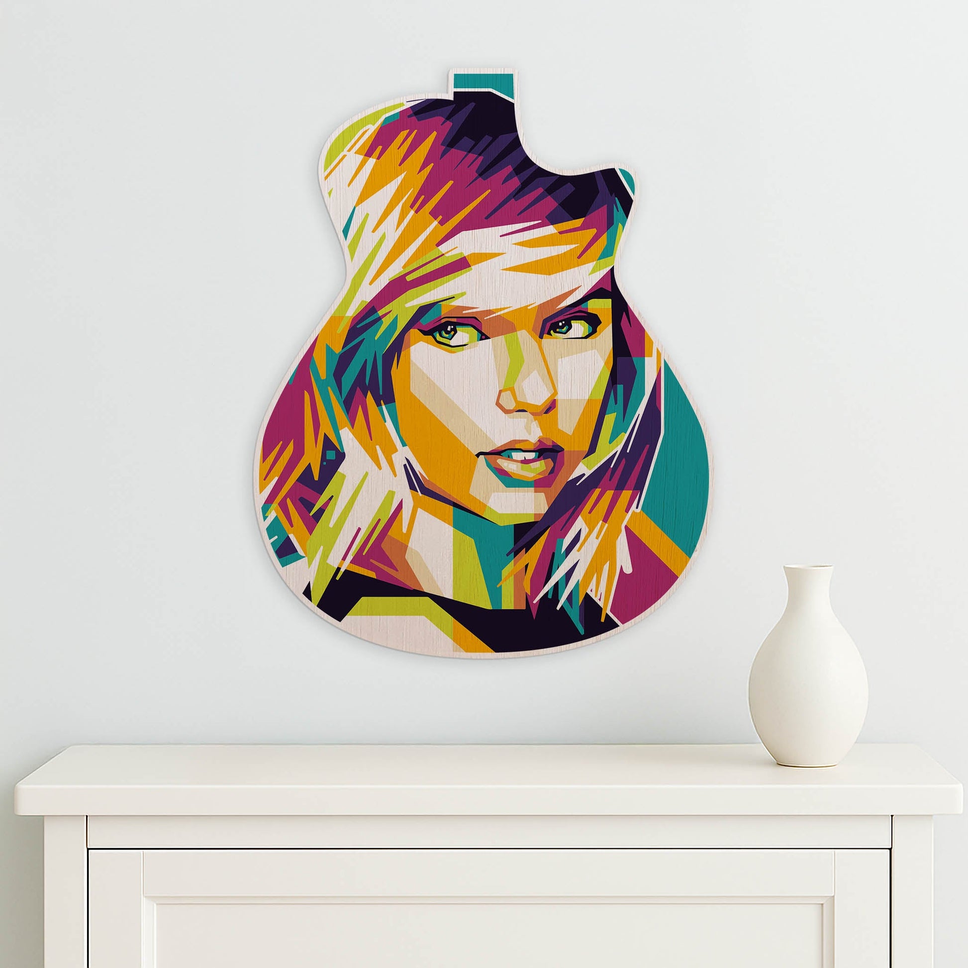 Printed directly onto 1cm thick, premium Australian-made Laserply, this 40cm × 32cm guitar-shaped wood print fuses vibrant digital artwork with the natural warmth and texture of wood.